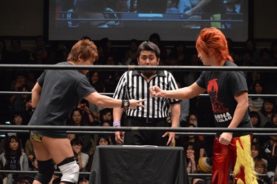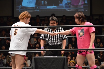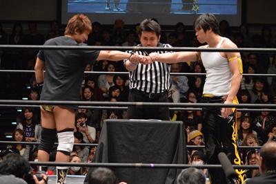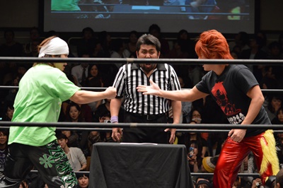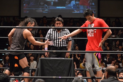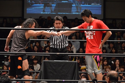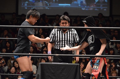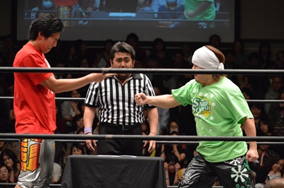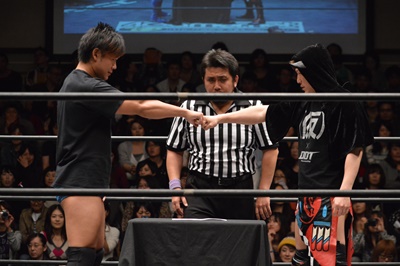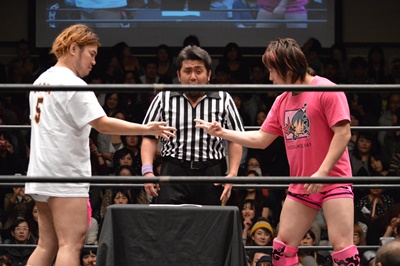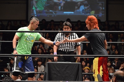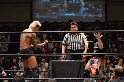 高尾がパーで勝ち(左写真)。これにより、11/30後楽園ホール大会でのKO-D無差別級への挑戦者は高尾蒼馬に決定!