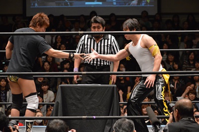 1回戦第2試合は大石真翔vs坂口征夫(左写真)。