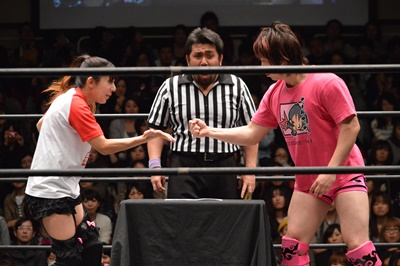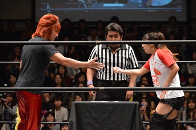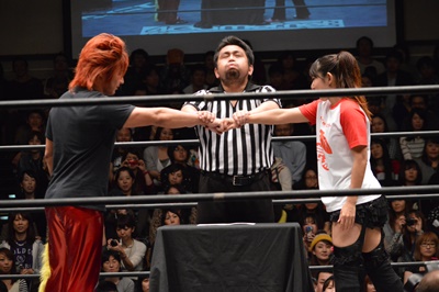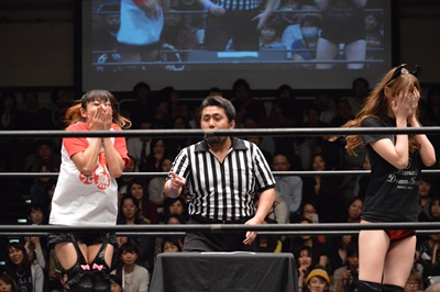 1回戦第7試合は女子対決、チェリーvs赤井沙希(左写真)。