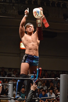 遠藤切り返して首固め(左写真)、カウント3。