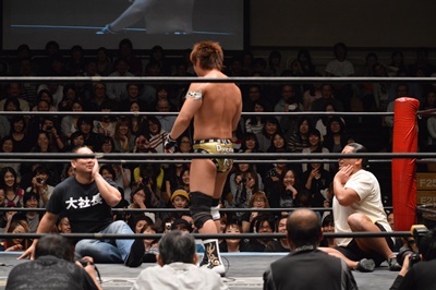 大鷲「そんな客の少ないところでひっそりとベルト獲られるより、どうせ獲られるなら後楽園で・・・」(左写真)