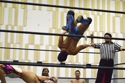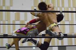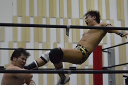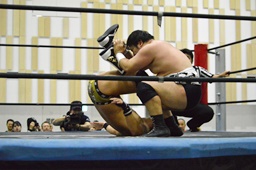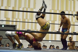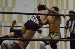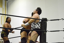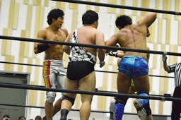 ハッピーモーテルは平田をコーナーに振って串刺し3連打、しかし平田はアントンをかわしT2ひーが逆に串刺し3連打(右写真)。
