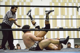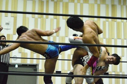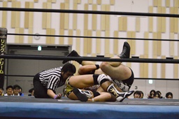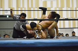 がっちり押さえ込んで(左写真)カウント3。