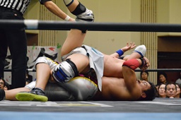 旭が竹下に卍固め、大石はカットに入ってきた松永にコブラツイスト(右写真)。