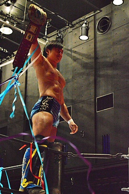 地元宮城県出身の遠藤がベルトを持って凱旋(左写真)。