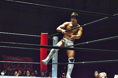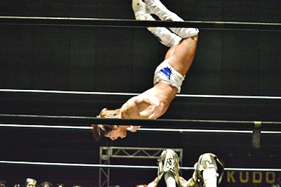 松野トップロープを飛び越えて勇躍リングイン(右写真)。