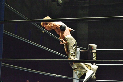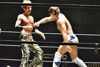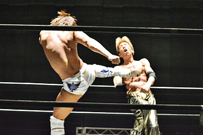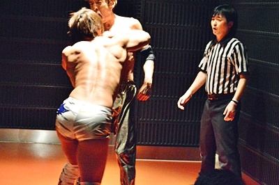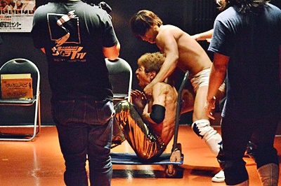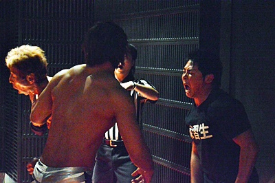 セコンドの宮武が闘いに巻き込まれる(左写真)。