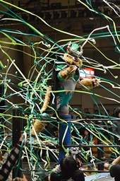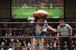 コーナーに振って串刺しビッグブーツ、コーナーに上げて雪崩式ブレーンバスター(左写真)、カウント2。
