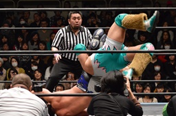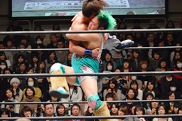 パイルドライバーはHARASHIMAリバース(左写真)、サッカーボールキック。