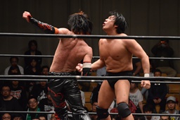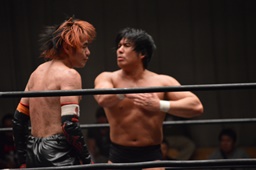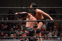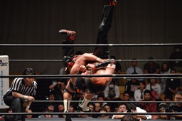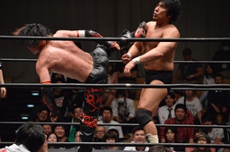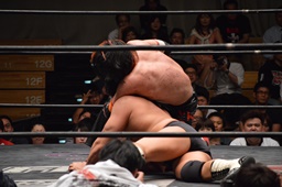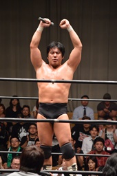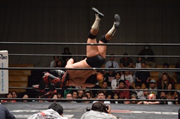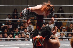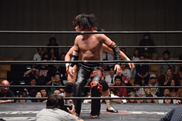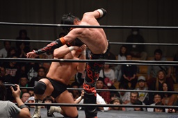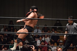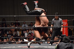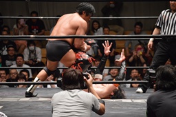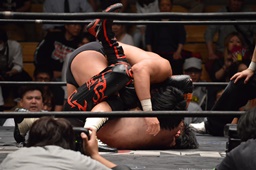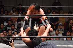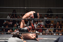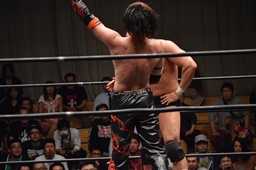 イサミはロープに飛んで勇脚・斬(右写真)、カウント3。