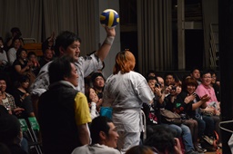 その後ろから石川修司もバレーボール持って入場(左写真)。