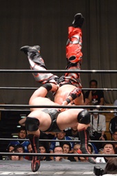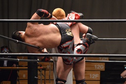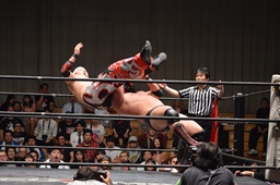 佐々木ブレーンバスター?狙うが火野ブロックして逆に投げる(左写真)。
