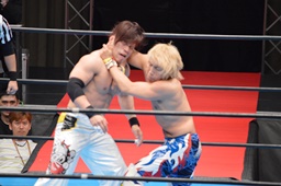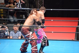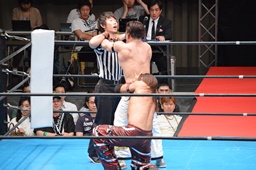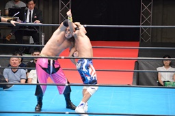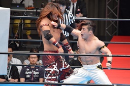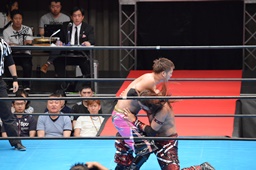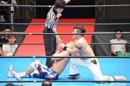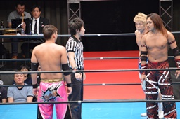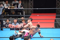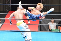 藤田エルボー、石森逆水平(右写真)。藤田は日高にタッチ。