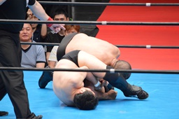 藤原をタックルで倒すが(右写真)、金原切り返す。