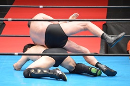 ロックアップ、藤原ロープに押し込む(右写真)、