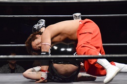 裕向は超高校級ラ・マヒストラルをブロックしてスクールボーイ(右写真)、カウント2。