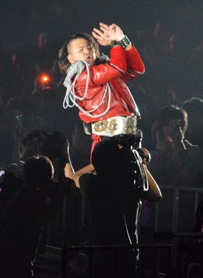 挑戦者・棚橋入場(左写真)。お、横でギター弾いてるのは・・・