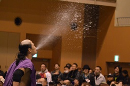 水を噴きまくるバラモン兄弟(左写真)。予備知識がなかったと思われる観客が犠牲に。