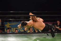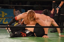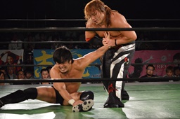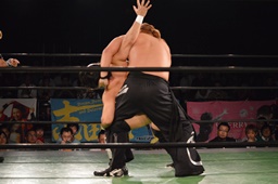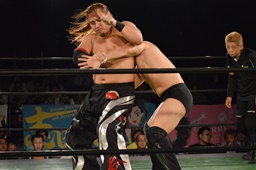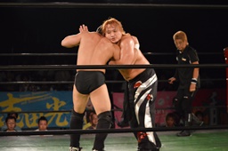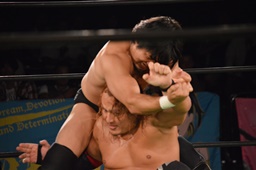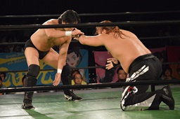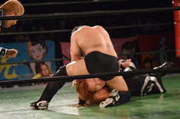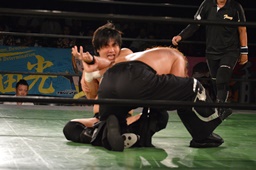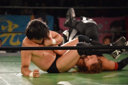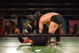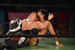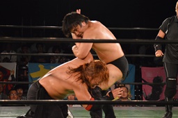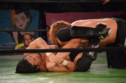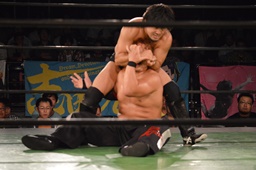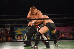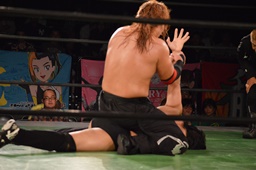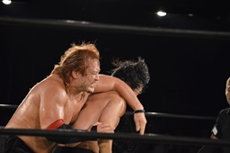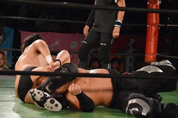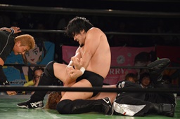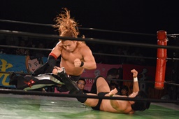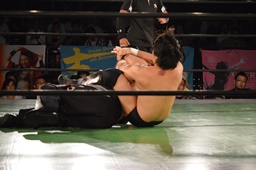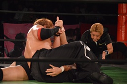 真霜無道に、丸山切り返してスクールボーイ(左写真)、カウント2。