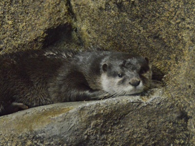 地上に出ると雨。しかたがないのでサンクスで傘購入。こないだ一個壊れたしね。なんでこんな早く来たかというと東山動物園でカワウソ見るため。前からいた2頭はアジアゾウ舎に移ったのだが、もといた場所にも多摩動物公園からドンが移ってきたという情報があったので。そこは相変わらず9時48分には暗くなるし。ドンは朝から元気。今は1頭で飼われてるけどいずれはペアリングされるんだろうか?