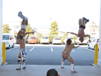 セミで富士をバックにゴールデンラヴァーズがダブルのムーンサルト決めたが逆光なのでこちらからフラッシュ、結果富士山は写らず。残念。人間の目には見えてても写真には写らないことはままある。