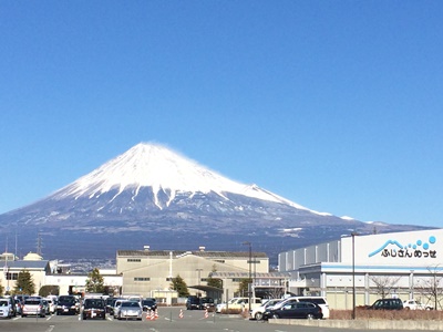 開場は予定通りの12時30分だったようだが、ゆっくり50分に到着。ふじさんめっせと富士山。
