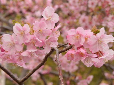 河津に移動。時刻はもう15時35分。川べりは6分咲きなので満開の原木に。