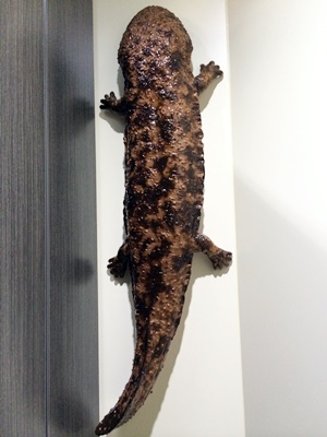 寄り道終了、水族館に。やっぱ20分かかるなあ。帰りどうしよう?まずトイレに入るとオオサンショウウオが飾られててびっくり。