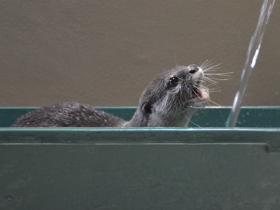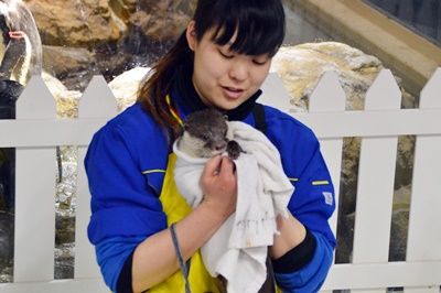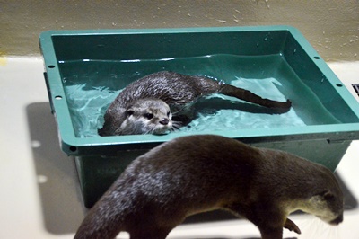 一旦外に出て出口のとこ見ると「8人乗りバス乗り場」というのがある。17時出発、桟橋には17時9分着。これは楽そうだ。これにしよう。16時半、今回の最大の目的のカワウソプレイタイムがスタート。