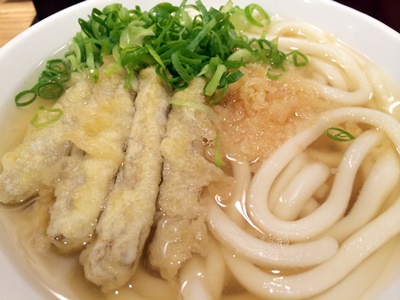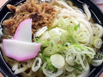 小倉駅ホームでかしわうどん。15時38分のバスで今日の会場の北九州パレスに。