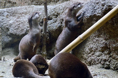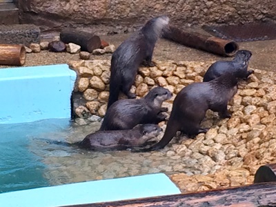 11時35分のバスで動物園に。コツメカワウソコーナーに直行。去年生まれた4兄妹はワシオザルが竹の棒で遊ぼうとしたらわらわらと群がって、