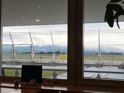 今日帰京組は15時半の連絡バスで空港に。16時半の着。即3階の展望レストラン「麦麦米米」で食事。