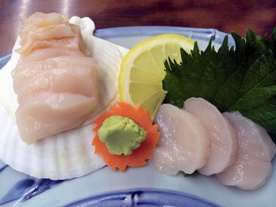 ほたて刺身。12時19分発問屋町方面行きバスで会場に。バス待つ間が寒い。仙台とは大違いだ。もし混んでたらどうしようと不安はあったが、数分遅れだったからまあ間に合った。