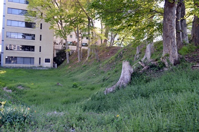 帰りは羽前千歳駅まで歩く。道を間違って15時31分発を逃したので次は16時16分発。ほぼ1時間待ち。山形駅には16時21分着。駅の看板に去年探せなかった三の丸土塁跡が表示してあったので探して歩く。今回もかなり迷ったがなんとか日が落ちる前に発見。これはでかい。