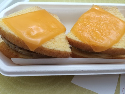 4時起き、5時11分の電車で新宿に。35分のバスで羽田空港に。朝食はこないだ食った寿司屋がいいなあと思ったが、どうも搭乗口が全然違うようだ。今日の搭乗口の近くにはねんりん屋のカフェのみ。バームクーヘンにハンバーグや卵をはさんだサンドイッチくらいしか朝食メニューがないので食べる。味微妙。さほど甘くはないとは言え・・・