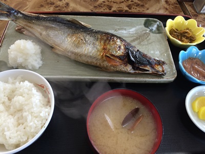 8時30分新千歳空港着。北海道だ。荷物が出るのが遅くなり予定の快速には乗れず。しかし次のが小樽まで行く奴だったのでガラガラ持ったまま小樽に直行することに。10時40分のバスに間に合い、11時に祝津着。で、朝食が中途半端だったので水族館ではなく青塚食堂先に。今日はうに丼ではなく焼き魚にうにも刺身もつく「豊漁定食」。2480円。にしんでかい。腹にはかずのこになる前の卵ぎっしり。