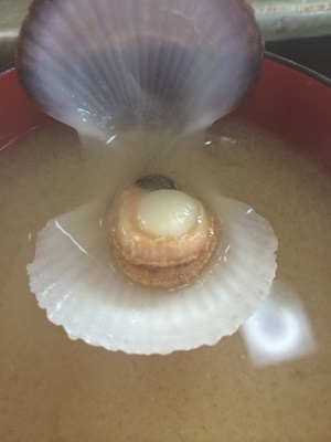 味噌汁はアサリやハマグリではなく小さいホタテ。