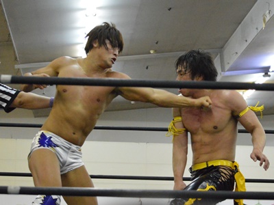 昼はディーノvs竹下、ケニーvsマイケル、アントンvs佐々木、HARASHIMAvsMIKAMIのワンマッチ興行4連発。決して1大会を4つにバラしたのではなく、それぞれが工夫を凝らし、体力惜しみなく使ってのワンマッチ興行×4だった。これは貴重なものを見た。