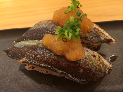 昼はスープカレーにしようかと思ってたが、駅ビルに行っても場所がわからなかったので地下の「花まる寿司」に。さんまの炙り。
