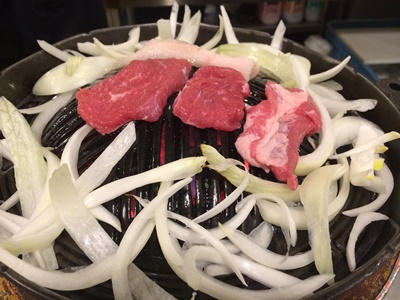 試合後イベントが3つあったが酒呑童子のしか行かないつもりなのでホテルに戻り、近所の「ヤマダモンゴル」でジンギスカン。肉は三種盛り。
