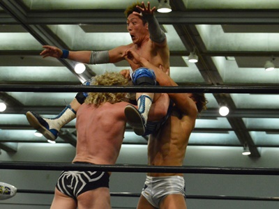 歩いて松山市総合コミュニティセンターに。コミュニティセンターはすぐにわかるが、プロレスやる会場がわからない。体育館ではないようだ(予定が張り出してあったがそこにはなし)。その前にメモ帳買わないと、ということでiPhoneでコンビニ検索。200mくらい離れたところにローソン1軒のみ。行ってみるがA6メモ帳はなし。仕方がないので一回り大きいB6のメモ帳を購入、コミュニティセンターに戻る。ポスターに「企画・展示ホールで前売り券発売中」と紙が貼ってあった。どこだ?>企画・展示ホール。探すと別棟らしい。これは地元じゃない人間にはわかりづらい。13時開始、最後の「Into The Light」によるオープニング。手拍子がなかなか出ないのは地方だし初興行だから仕方ないが、謎のマスクマン・お城下キッドも出てなかなかの盛り上がり。休憩前のアジアタッグ、店長ズがいい連携見せたが石井&入江安定。セミのKO-Dタッグも昨日ハードな試合をやって今朝移動した飯伏はこれでもう十分でしょうって感じ。これがメインじゃなくてメインは酒呑童子とスマイルスカッシュの総力戦。まあこれが今のDDTのトップ戦線だしな。観戦記はこちら。