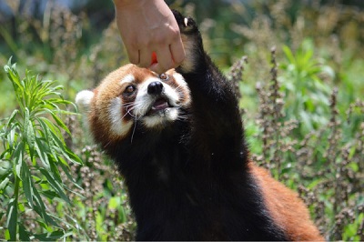 仕方がないので隣のレッサーパンダ舎に。おやつの時間。