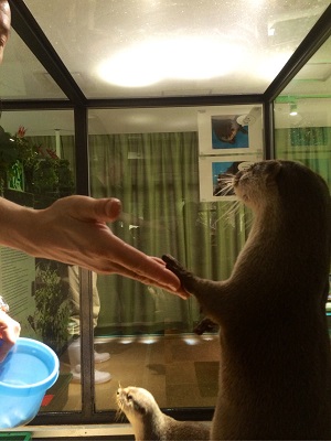 新大阪には11時着。急いで御堂筋線に移動、11時4分のに乗れた。淀屋橋で京阪に乗り換えて枚方公園に。しかし腹が減っていたのですぐにはひらかたパークに行かずに駅前の大阪王将で餃子と炒飯。いちがいには言えないが、ここのは東京の店よりうまかった。ひらかたパークに入園し、まずは屋外のカワウソに。外で寝てたが、シャッター音で警戒させてしまったか中に。