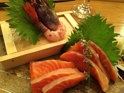 階段刺身は2人前からとのことなので、刺身は時しらずとぶどう海老にする。うまい。しょうゆは寺岡家。