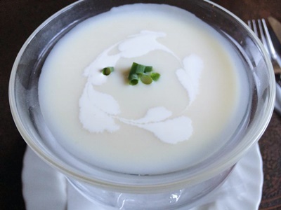入るとおじいちゃんとおばあちゃんと若いスタッフ1人?でやってる店だった。意外。客も少ない。出してくれた冷たいおしぼりがありがたい。まずはヴィシソワーズ。
