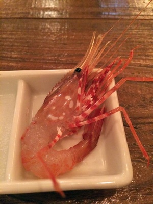 すすきのに移動して「居心地」に。今日のお通しは活ボタンエビ。