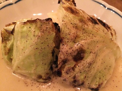 キャベツの炭火焼。バーニャカウダっぽいソースがうまい。