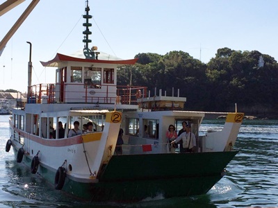 兼古から士堂発着所にフェリーで渡る。さらば向島。1時間もいなかった。あっ、「てっぱん」のロケ地見るとか思いつかなかった!士堂から千光寺道踏切はすぐ。ここまで来て昇福亭寄れないのも残念だが、すでに時刻は10時。10時44分の列車に乗らないとDDT試合前サイン会に間に合わない。