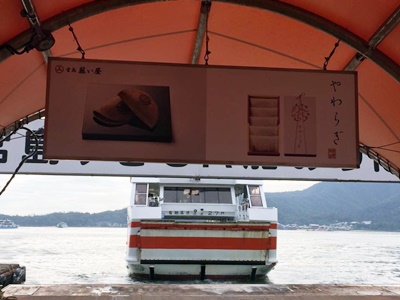 その前にグッズショップ。これはつい買ってしまうだろ!歩行者に「すいません、すいません」と謝りながら走る乗合タクシーで港に到着、11時25分のフェリーで宮島口、11時47分発の山陽本線で横川に。