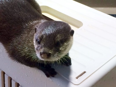 8階のカワウソはさらっと見て1階の昨年生まれのチビウソ展示に。朝から元気でありがたいことだ。